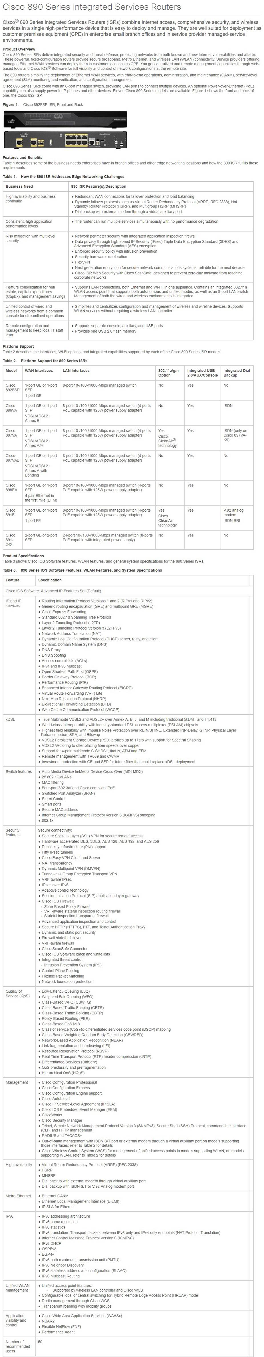 SKU#: C892FSP-K9 / ITEM NO: 583868 / BRAND: Cisco