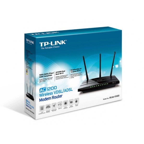 TP-LINK ARCHER-VR400 AC1200 WIRELESS VDSL/ADSL MODEM ROUTER, LAN(3),USB 2.0(1),ANT(3), 3YR WTY